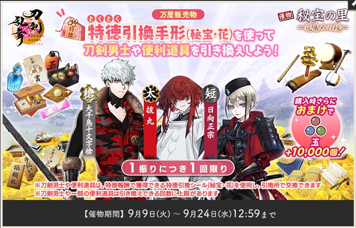 ※「特徳引換手形(秘宝・花)」は万屋でのみ購入できます。