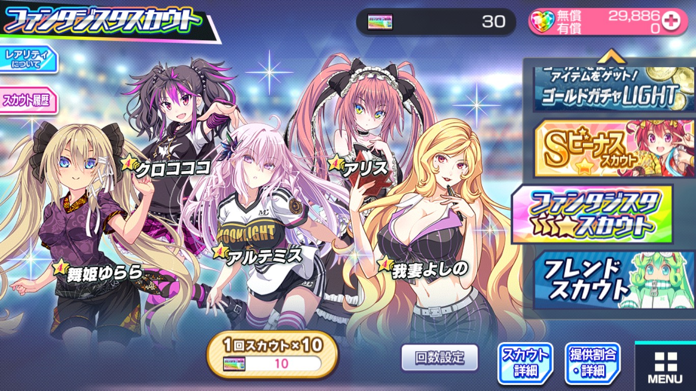 スカウトの演出では、仕様上ハズレ枠も混ざるが確率は正常に動いている。
