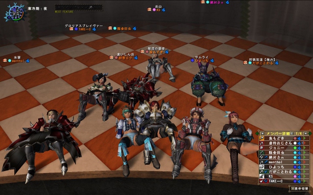 現在54人Lv13。元団長によると野良猟団は猟団じゃなく病人の集まりヾ(`・Д・)ノ゛だそうです
