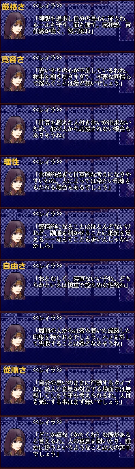 精神:好戦、内向、勇猛、臆病、慎重、狡猾