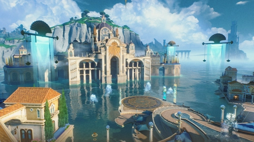 | ラグーナ リナシータの構成都市の一つ、ラグーナ城。ここは繁栄を極めた港町で、海上に浮かぶ各城区は水路で繋がっている。 ラグーナの人々は歳主を神として崇拝し、公共音骸を歳主からの賜り物、更には歳主の意志を伝える存在と見なしている。 | |||