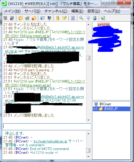 これが意味するところは、マルチを募集する場合はキーワードを言えば、IRCにいるメンバー全員が気づけるということです。