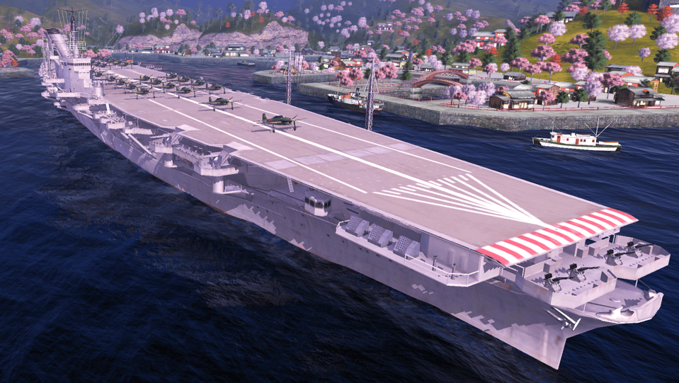 超強い空母…という訳では無いのだが、日とは思えない程強力な爆撃機に、劣化しているとはいえ日本らしい特徴を備える雷撃機。オマケの火力にしては十分な上、補助まで可能な戦術爆撃機に加え、2中隊の戦闘機を備えるなど、日本版の爆撃特化空母としては優秀で出来ることも多い多様な役割を持てる空母である。