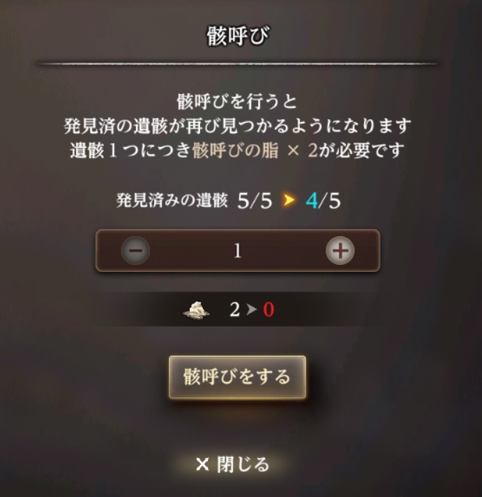 一般冒険者の場合、脂2つにつき1つの遺骸が復活可能だが、どの遺骸が復活するかはランダム。*8