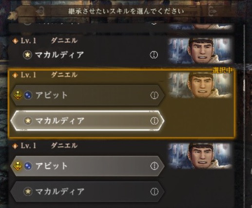 通常継承スキルと潜在継承スキルを選択できる。
