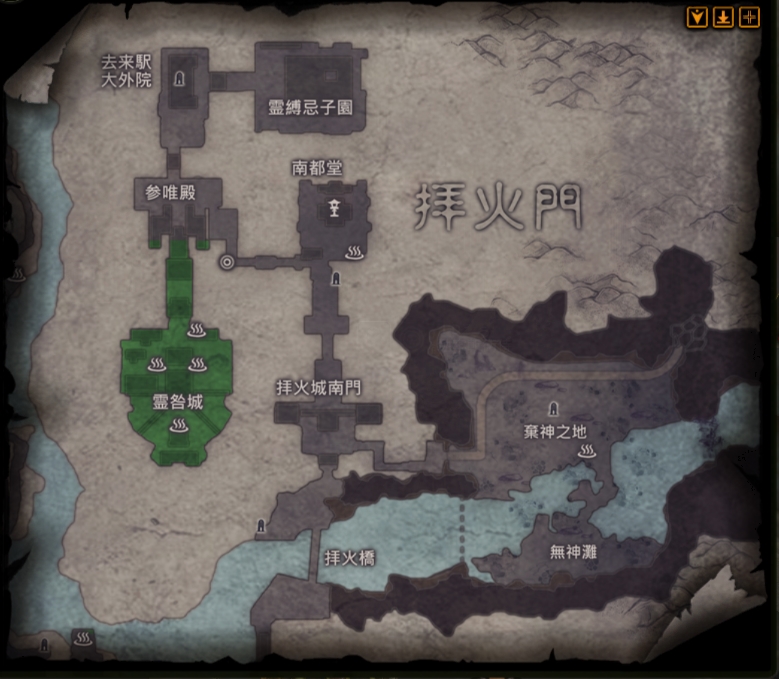 ![]() | 霊荒院[e] | ![]() | 霊咎域[e] | ![]() | 拝火門[e] |
